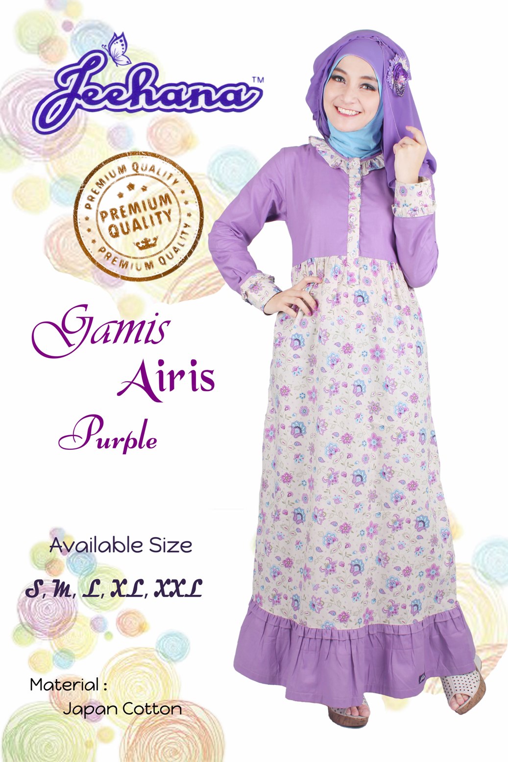 Toko online yang menjual baju gamis cantik - gamis Airis Jeehana. Gamis Simpel, Cantik nan Elegan berbahan  full katun jepang bermotif bunga yang dipadukan dengan warna polosan yang senada.
